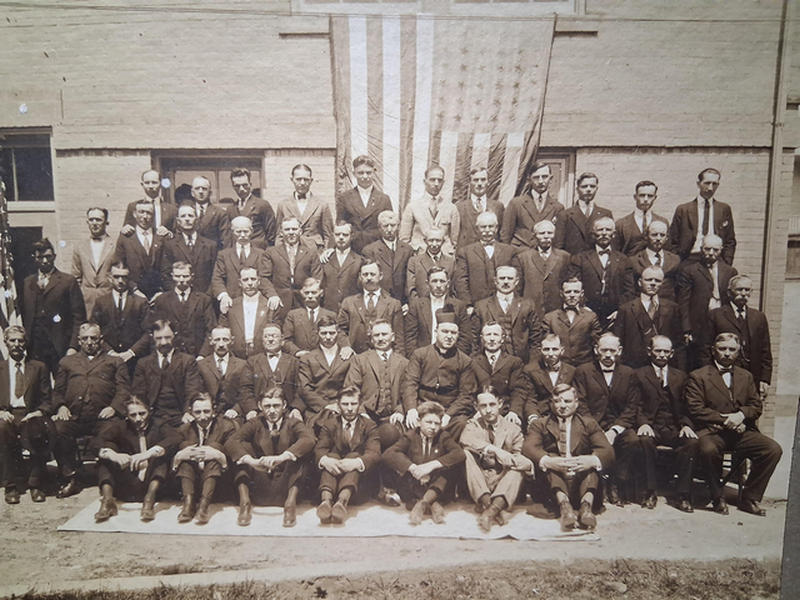 Many years ago, while visiting the First National Bank on Oak Street with my Mother, I noticed that one of the people in the photographic wall mural appeared to be my Grandfather.